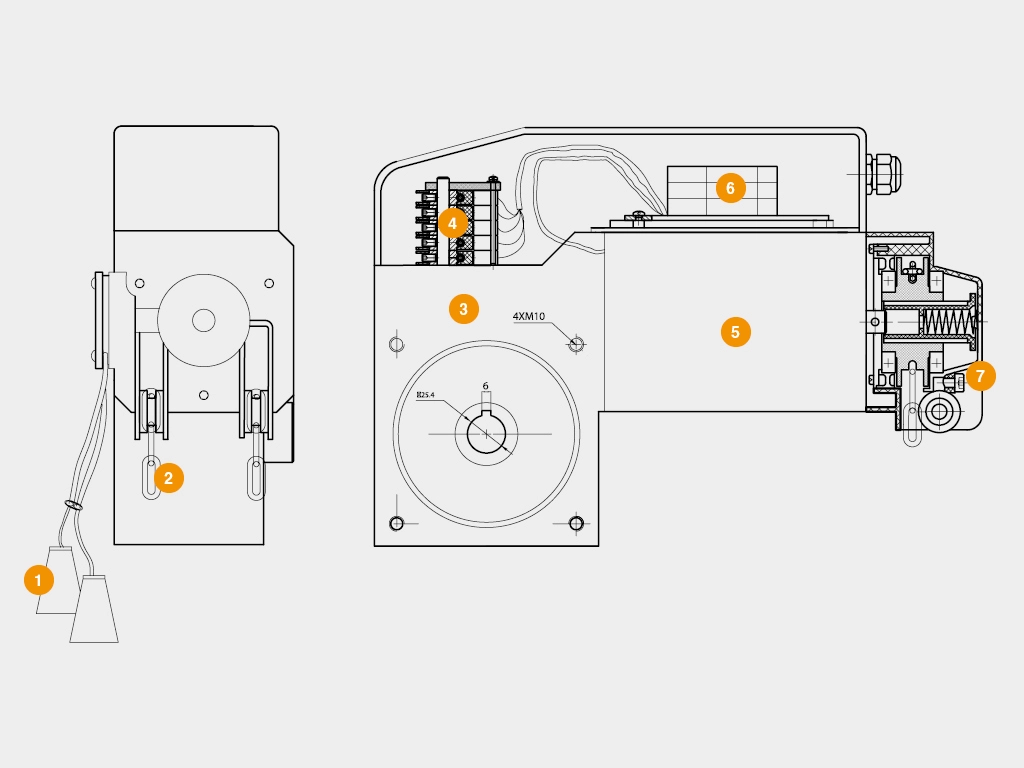 Электропривод со встроенным блоком управления, крепежные элементы для монтaжa.