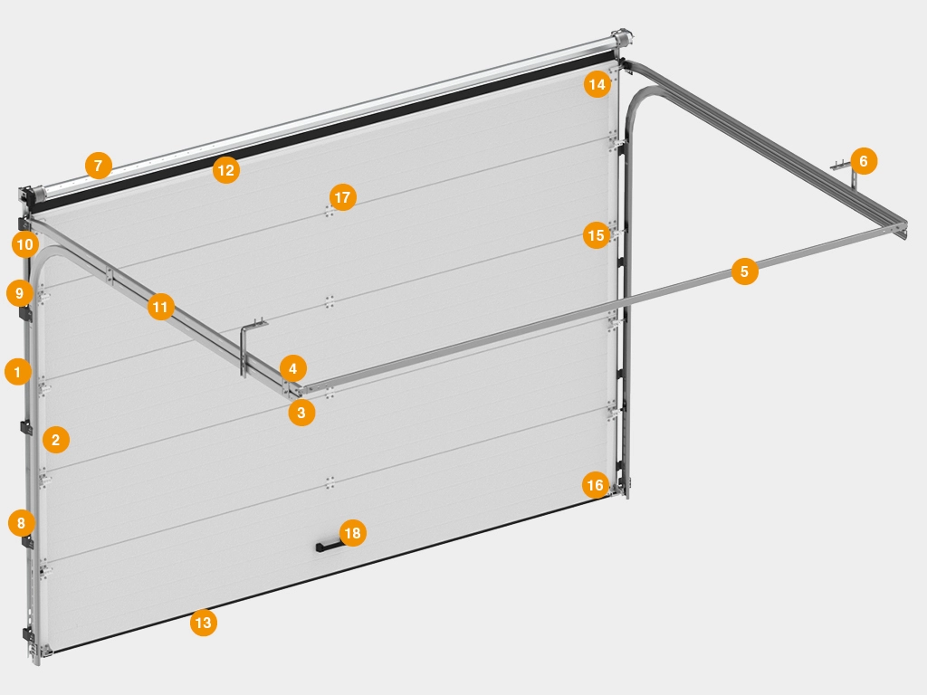 Полотно из энергоэффективных алюминиевых сэндвич-панелей толщиной 40 мм с усилением под внутренние петли и боковые опоры.