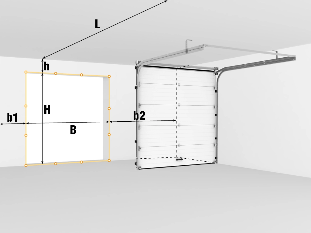 5. b1/ b2 — левое/правое боковое расстояние (расстояние от соответствующего края проема до препятствия), min 100 мм.
